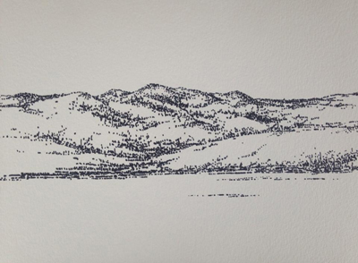 Yes, one line, all the way across, then the next line, all the way across, and then you keep going. But also you have a good idea of tone so you know what is going to come forward, what is going to recede, what is going to make the impression of cloud or a rock in the landscape…